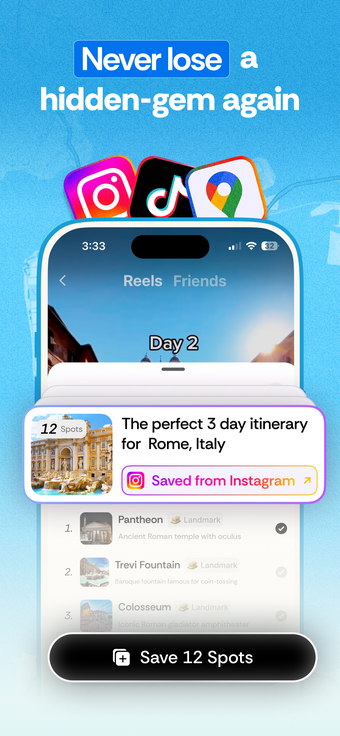 Roamy è un'applicazione innovativa per iPhone che semplifica la pianificazione dei viaggi. Permette agli utenti di salvare i luoghi dai video di Instagram e TikTok con un solo tocco, organizzandoli su una mappa chiara e facilmente visualizzabile. Con Roamy, gli utenti possono visualizzare e gestire le loro destinazioni in un unico posto, facilitando la creazione di itinerari personalizzati in base alla durata del viaggio. Grazie a questa funzionalità, è possibile evitare la confusione di note sparse e cartelle disordinate.